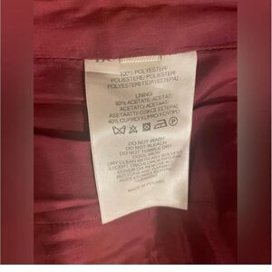 Fabric: 100% Polyester; Lining 60% Acetate, 40% Cupro Color: Red