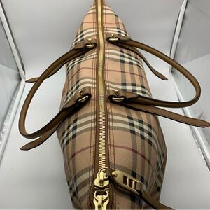 Burberry Medium Haymarket Check Salisbury Mid Camel Leather / PVC Tote