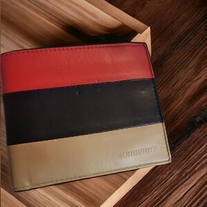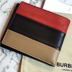 Burberry Mens Colorblock Leather Bifold Wallet with Dust Bag and carecard