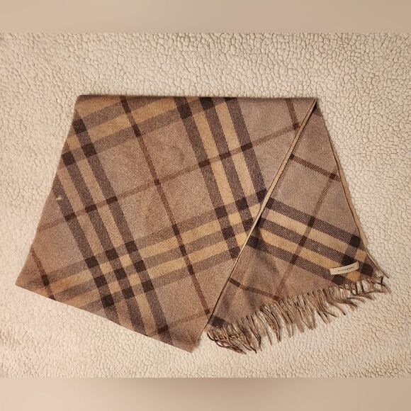 Burberry cashmere scarf,it's used with sign of wear,the scarf has stains and one rips,please check all photos for details,if you have question please free to ask