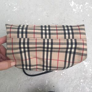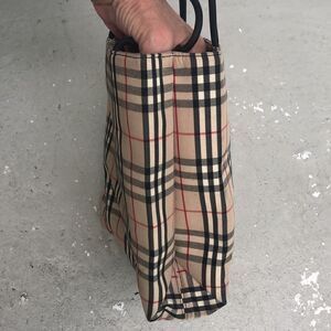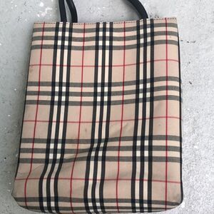 Super cute, small canvas nova check tote but please look at the pictures. Exterior has no damage but it needs cleaning. Interior has discoloration along the bottom which I showing pictures. Measures 8 x 10 x 3, and handle drop is 4”