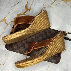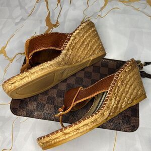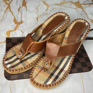 Burberry brand brown leather espadrille wedges excellent condition no damage features a wedge height of 3 inches European 37