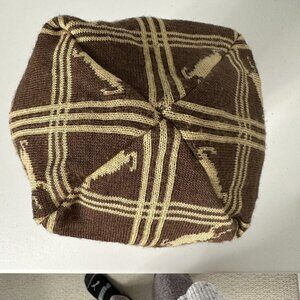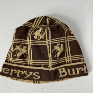 Burberrys Cashmere Beanie Hat Equestrian Knight London 1980s Brown Knit