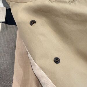 • Buckled cuffs, double-breasted button closures, detachable buckle belt