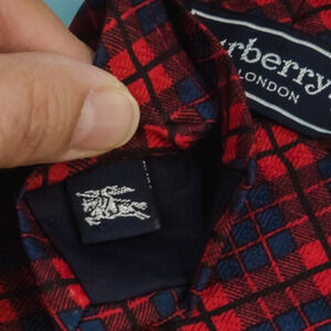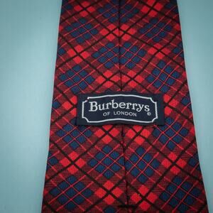 Burberrys Designer Silk Red Blue Plaid Print 4 Inches Classic Width Career Work Tie Necktie