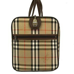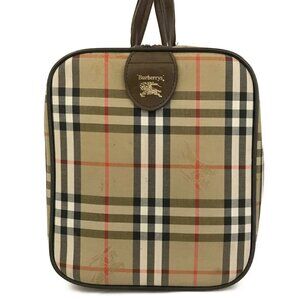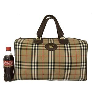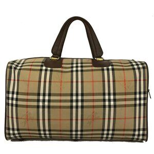 A pre-owned. Burberrys Horse Logo Check Canvas Boston Hand Bag Beige/7BE1328. The bag is in very good used condition with normal wear from use. Please check the photos for more details.