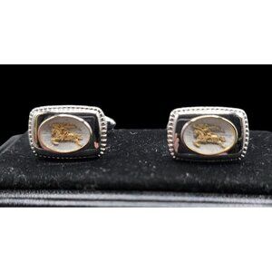 Burberrys London Mens Cufflinks Silver Plated Gold Tone Royal Knight Scene 1980a