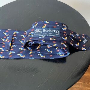 Burberrys Mens Silk Neck Tie Navy Parrot Novelty Print Pattern Made in England