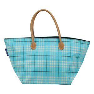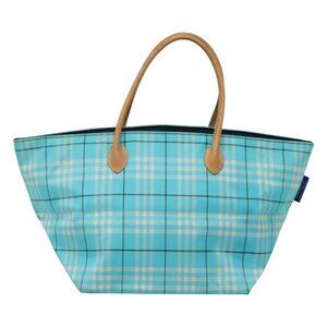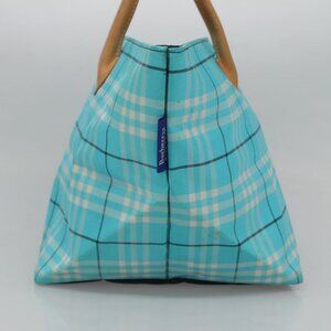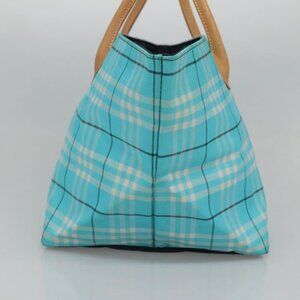 Burberrys Nova Check Blue Label Tote Bag Nylon Light Blue Silver Auth kk485