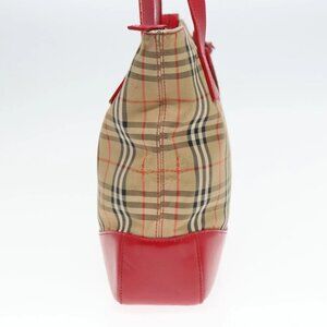 Burberrys Nova Check Hand Bag Canvas Leather Beige Red gold Auth 93197