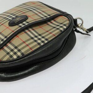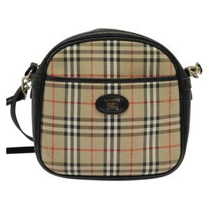 Burberrys Nova Check Shoulder Bag Canvas Beige Gold Authentic