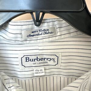 Burberrys Of London Shirt Men’s 17 1/2-35 Button Up Blue Stripe Prep Office