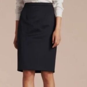Burberry's (Size 12) Navy 100%Wool Preppy Luxurious Pleated Accent Pencil Skirt