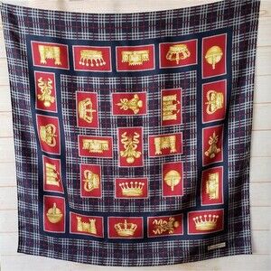 Burberrys Vintage 100% Silk Plaid Crown Print Scarf