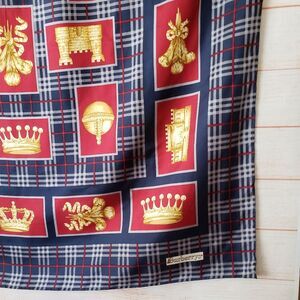 Burberrys Vintage 100% Silk Plaid Crown Print Scarf Luxury Designer