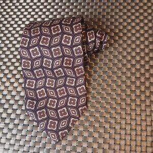 The Burberrys of London Geometric Design Silk Tie is a vintage designer piece perfect for men looking to add a touch of classic style to their wardrobe. Made from luxurious silk with a woven geometric pattern, this tie features the iconic Burberry logo as accents. The adjustable attachment ensures a comfortable and secure fit, while the vibrant multicolor design adds a pop of personality to any outfit. Handmade and crafted with attention to detail, this tie is a timeless accessory for those who appreciate quality and sophistication.