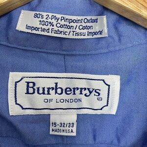 Burberrys of London Mens Dress Shirt Size 15-32/33 Blue Cotton Long Sleeve