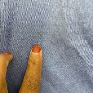 Good Preowned condition. There is 2 tiny pulls on the front by the button & tiny faded dark spot on the back