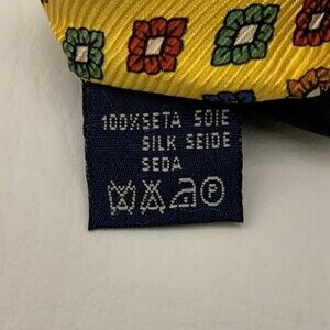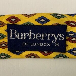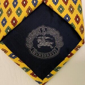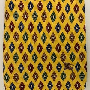 Burberrys of London Mens Tie Necktie Yellow Multi-color Diamond Shapes 100% Silk