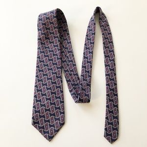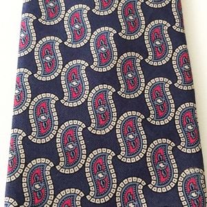 Burberry's of London Necktie TIE 100% Silk Navy Red Paisley Hand Sewn in USA
