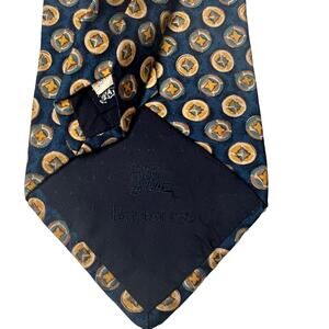 Burberrys of London Vintage Blue Yellow Gold Medallion Print 100% Silk Neck Tie