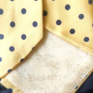 Elevate your style with this elegant Burberrys yellow polka dot tie. Perfect for any formal occasion. 57" tip to tip