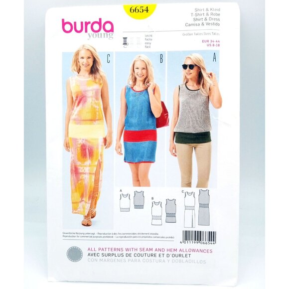 The Burda Young Pattern 6654 is a versatile and uncut pattern for making your own shirt or dress. Suitable for sizes Eur 34-44, US 8-18.