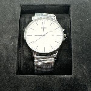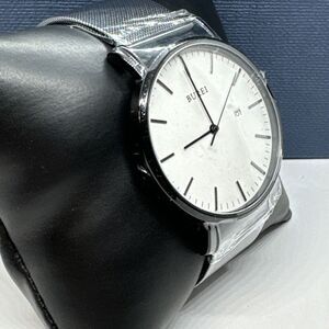 Burei S-19003M Men's Silver Stainless Steel Mesh Analog Dial Quartz Watch JNA80