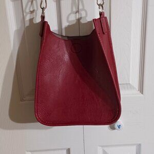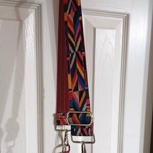 Sweet 2 pocket red leather Cross body bag with a comfortable Geometric print strap! I knew this purse has two straps, the second one is leather and matches the purse. It's also never been used, and I found it today !