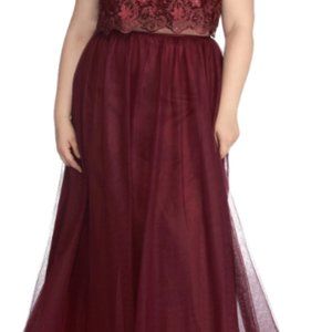Burgandy Tulle Two-Piece Ball Gown Dress