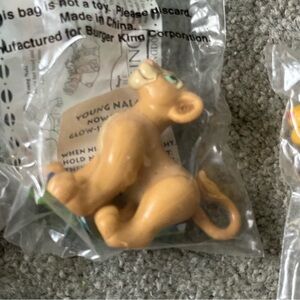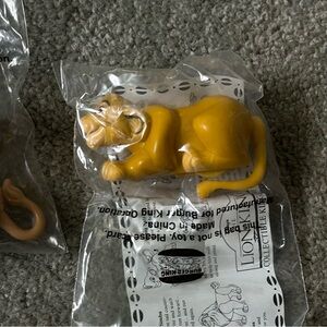 Lot of five toys 1994 Pumba; opened but in original bag Young Simba; factory sealed Scar; factory sealed Young Nala (2); factory sealed