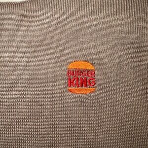 Keywords: Burger King, Manager Sweater, Crewneck, Embroidered Logo, Knit Sweater, Pullover, Retro, Novelty Sweater, Streetwear, Fast Food, Collectible, Limited Edition, Unisex, Casual