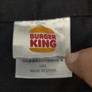 Burger King Shirt Mens Large Black Short Sleeve Button Up Uniform Embroidered