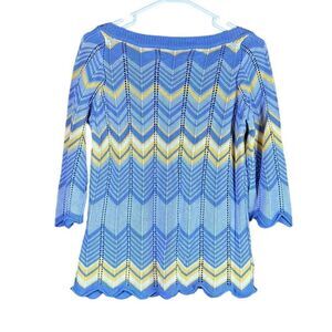 Burgess Blue and Yellow Silk Blend Sweater Size Medium