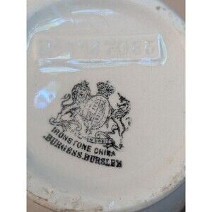 This antique water pitcher from Burgess Burslem is a stunning addition to any collection. With a capacity of 30 oz and a height of 6.5 inches, it is the perfect size for all occasions. The pitcher features a round shape with a gold leaf design and is made of white ironstone China.