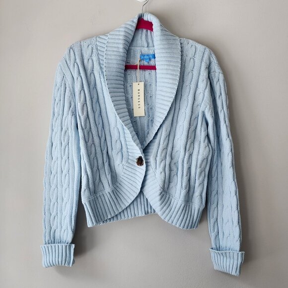 Burgess Cardigan Sweater | Women's Med | The Kiki, Frost Blue, Cable Knit NEW