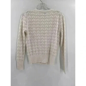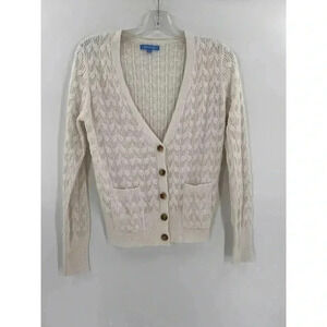 Burgess Cotton Cashmere Ivory Crochet Cardigan Sweater With Pockets Size XSMALL