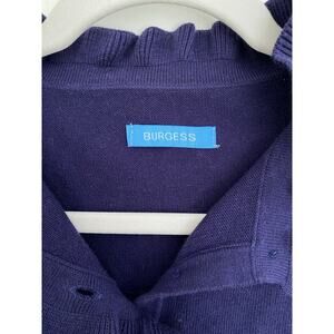 Burgess Cotton Cashmere Navvy Blue Ruffle Neck Sleeve Button Sweater Pullover | Retail $185