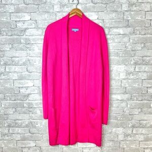 Cotton and Cashmere Open front Sweater Cardigan, size Large. Pockets on front, long sleeve, hot pink.