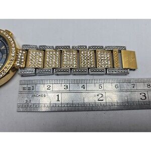 Burgi Womens Two Tone Crystal Swiss Watch Blue MOP Multifunction New Battery