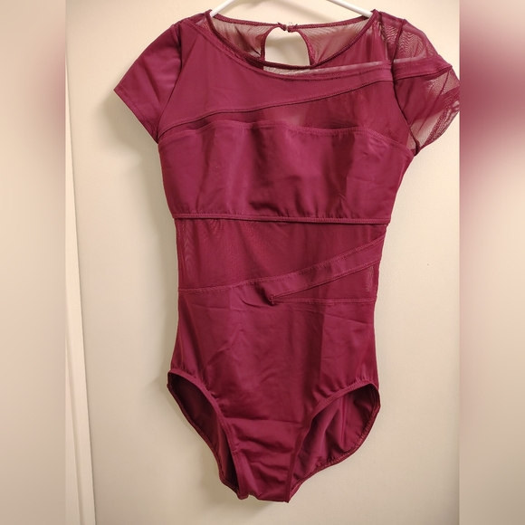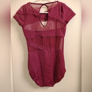 Balera Women’s Adult Burgundy Leotard with neck piece and back mesh detail Large