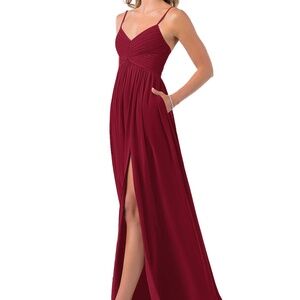 Burgundy Alia bridesmaid dress from Azazie, size A2