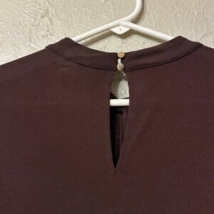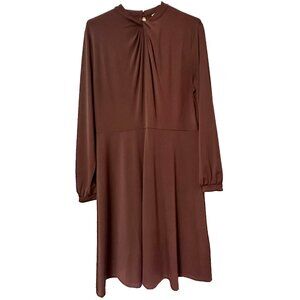 Burgundy, A-line, Long-Sleeve Dress w Ruched Collar Detail & Peephole in back