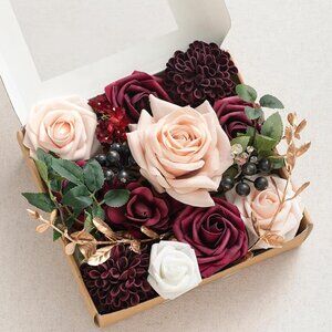Burgundy Artificial Flowers and Greenery Mini Combo Box Set, Marsala & Blush Fak