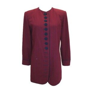 Burgundy Blazer Navy Buttons Womens 8 En Avance Haute De Gamme VTG Shoulder Pads