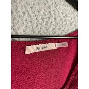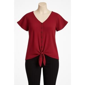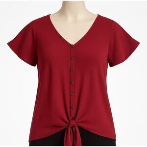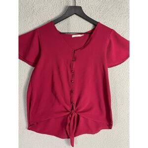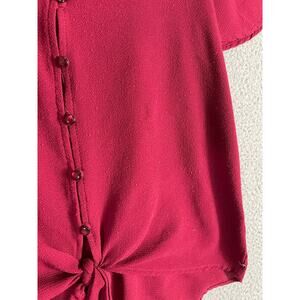 Burgundy Button Front Tie Hem Blouse Short Sleeve V-Neck Top Women’s Medium