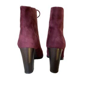 Burgundy chunky heel suede feel boots that string up. Excellent condition,