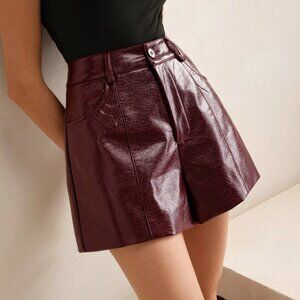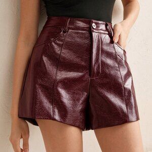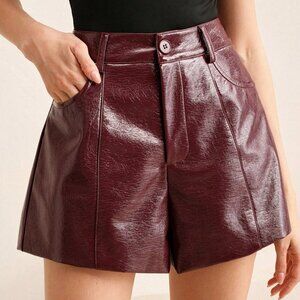 Burgundy Casual Women's Business Chic Iridescent Faux Leather Shorts