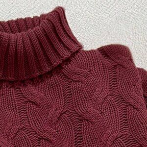 Burgundy Casual Women's Comfortable Twisted Rope print Textured highneck sweater