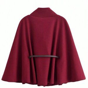 Burgundy Casual Women's Elegant Stand Collar belted Poncho Coat